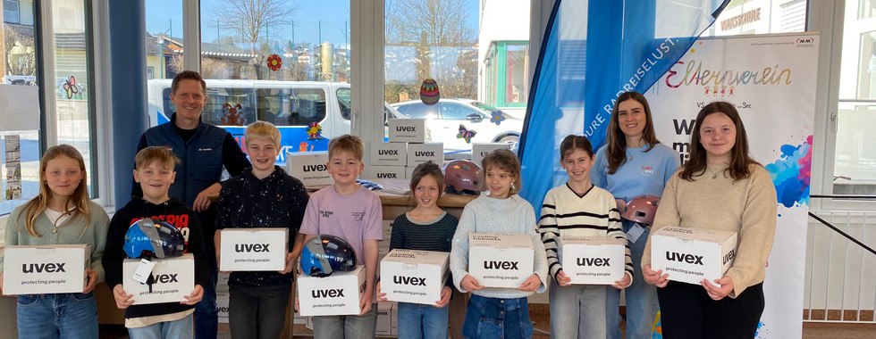 Die Vorfreude in den Klassen war riesig. Jedes Kind durfte sich sein persönliches Modell von Uvex in Blau oder Rosé aussuchen. Die Helme sehen nicht nur sportlich aus, sondern bieten vor allem den Schutz, den die Kinder für ihren Weg in den Straßenverkehr benötigen.